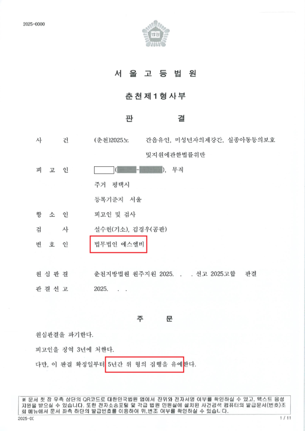 [형사] [집행유예] 미성년자의제강간 사건 항소심(구속피고인 석방)